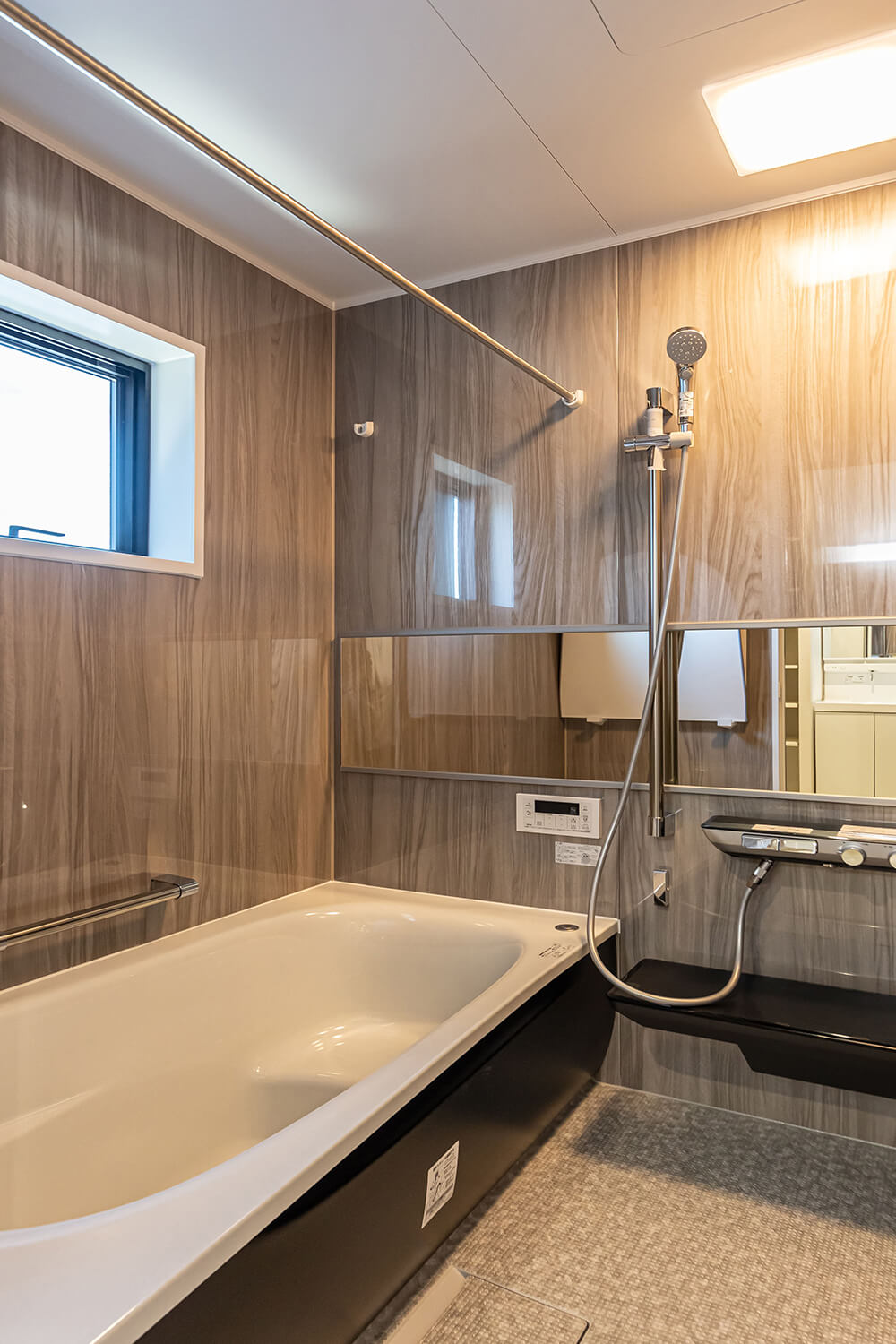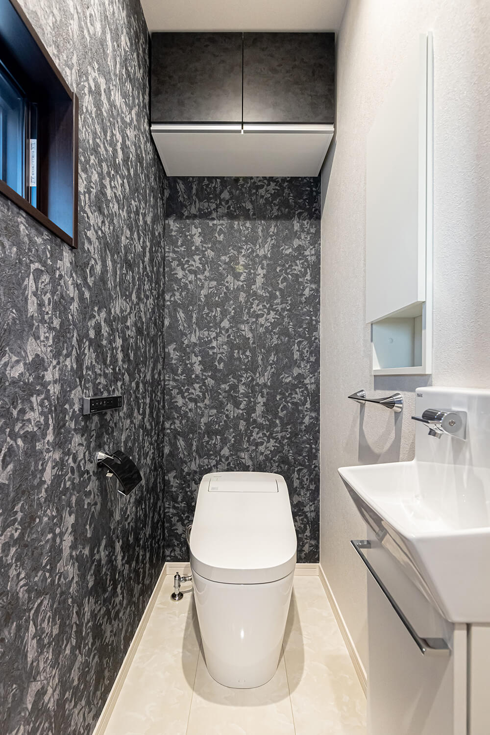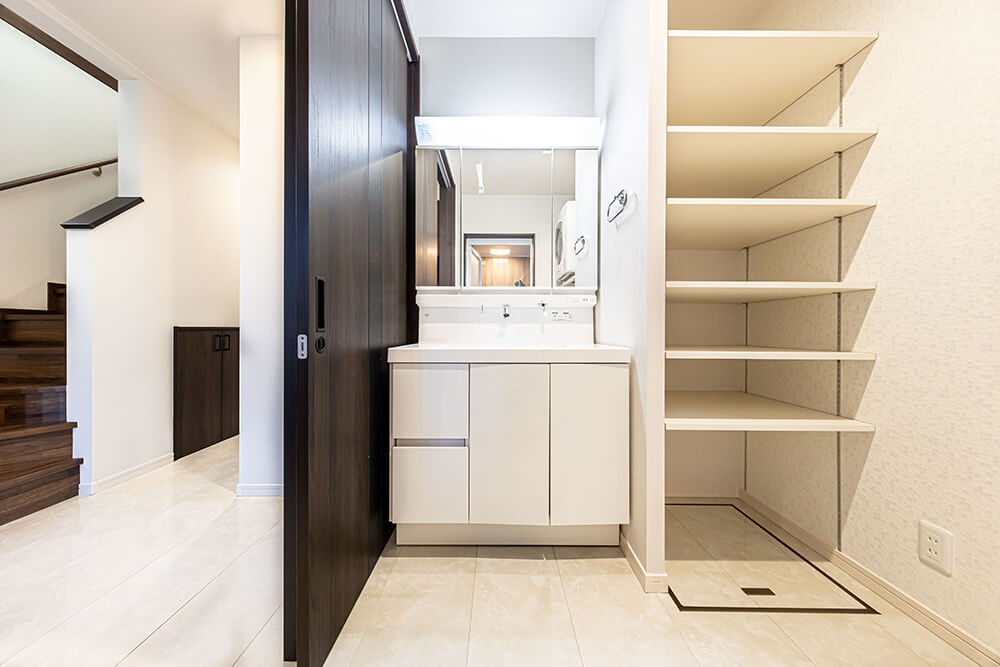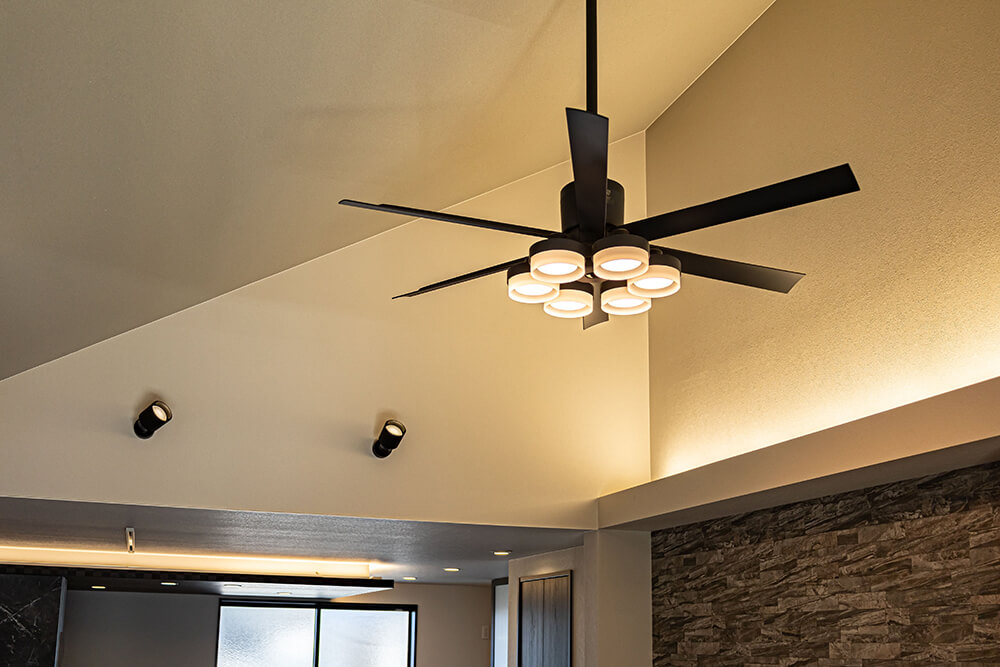 優美なリビングダイニングから覗く、和室が印象的なお住まい。 日中は大きな窓から光が差し込み、日が暮れるとこだわりの照明が暖かくお部屋を照らします。 時間・場所によって、様々な表情を楽しむことができる住宅に仕上がりました。
