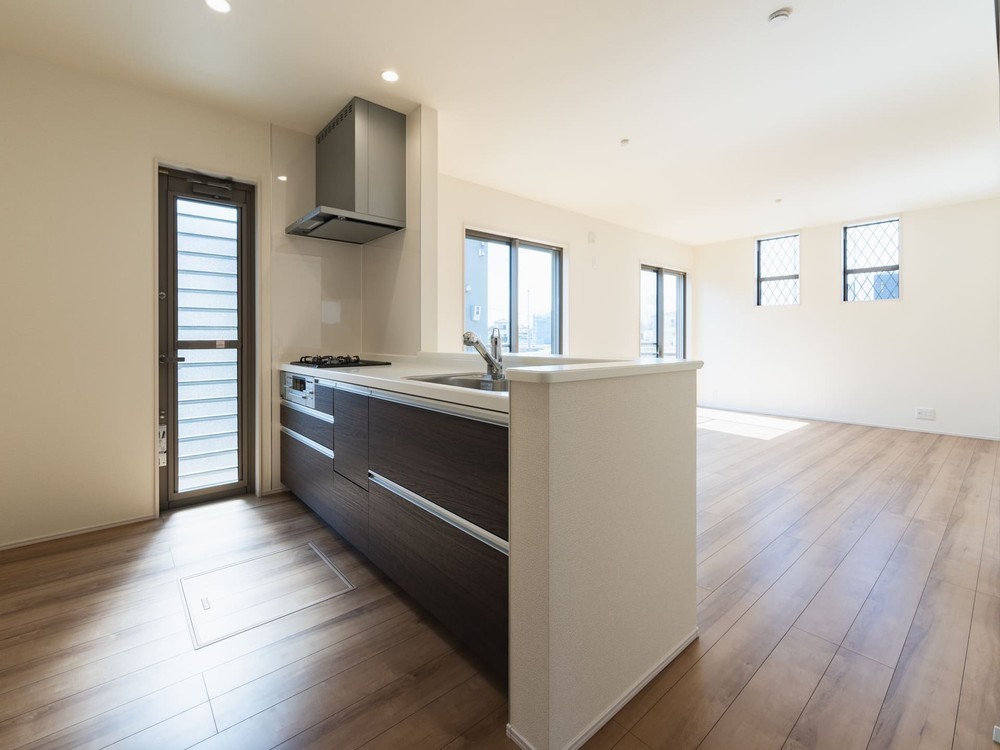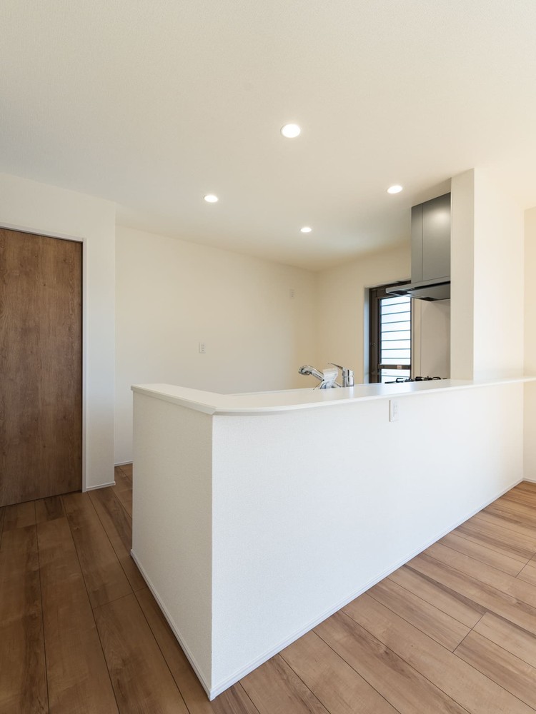 コストバランスを考慮しながらも、家族が集まるLDKには最大限のゆとりを持たせました。 南側に配した大きな窓からは、暖かな陽光がリビングの隅々まで差し込みます。 木目調のフローリングと清潔感のあるホワイトの壁紙が、実際の面積以上の開放感を演出し、賑やかな5人家族の毎日を明るく包み込みます。